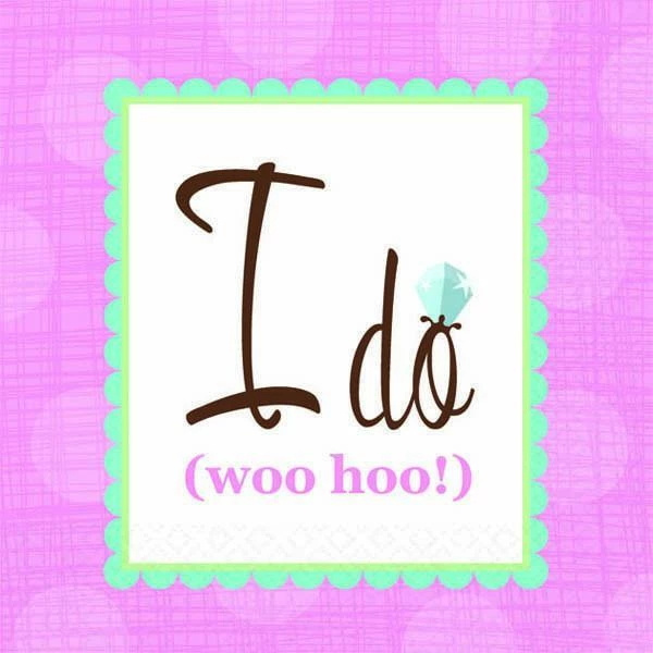 It is a big moment when the Bride to Be says “I do!”. The Woo Hoo party napkins will say it again and again. The napkins are teal, light pink with chocolate accents. So sweet and So perfect for a Bridal Shower orย Bachelorette Party. For a coordinating luncheon size napkin search the Does This Ring Make Me Look Engaged. Same colors. Bright and Fresh. For more coordinating party decorations search Teal. The Giant Banner, lanterns, favor boxes, dangler and name tag – label stickers are a GREAT VALUE for classy decorations. The diamond ring party theme has even more party decor ideas.