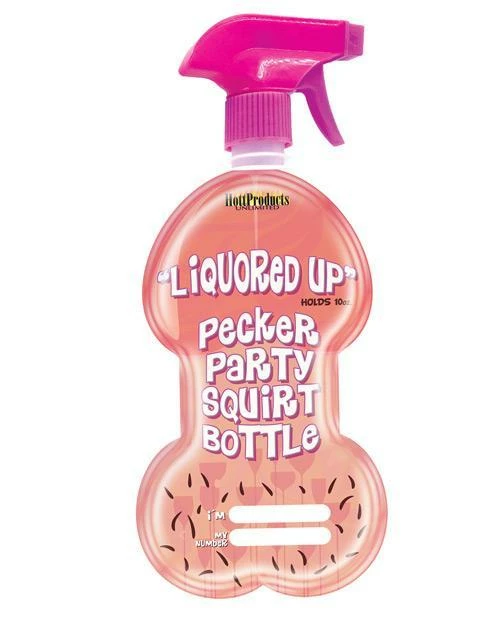 Shooting party shots just got a whole lot more fun with the “liquored up” Pecker Party Squirt Bottle! Fill this party squirt bottle with your favorite beverage and point it in your friends direction and shoot streams of alcohol down their ready and willing throats. For an added smile just twist the dial to spray and let the fun begin. Good way to cool off if things are heating up. There is a beverage measurement on one side that lets you know how you are doing. Have you drank enough to feel warm and fuzzy? The bottle has a small pink hook so it can easily attach to your belt loop or purse for hands free carrying. This is perfect for the Bacheorette Party or any adult party. A different and fun way for the party crew to carry their favorite beverage and share with others. Perfect for Pool Parties. There is a space to write your name. Best party favor ever!!!