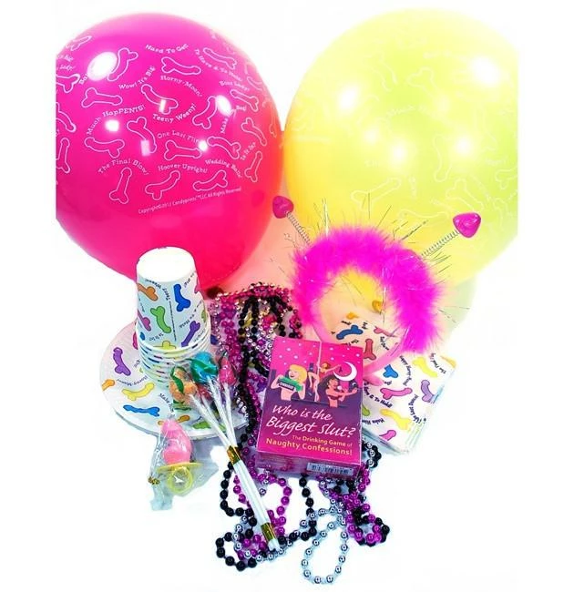 The Risque Party Package makes Planning a naughty Bachelorette Party easy! These cute little penis’ will complete the theme. This Party Kit would be appropriate for an Naughty Birthday Party. The risque party package makes being the perfect party host a snap. Note: Staff may substitute similar items due to stock fluctuation. The Risque Party Pack includes: