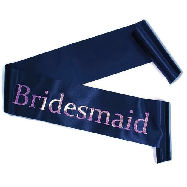 Satin Black w/ Pink ‘Bridesmaid’ Sash is a 4 inch wide satin sash with 2.21 inch glitter font that reads Bridesmaid. Classy and fun!